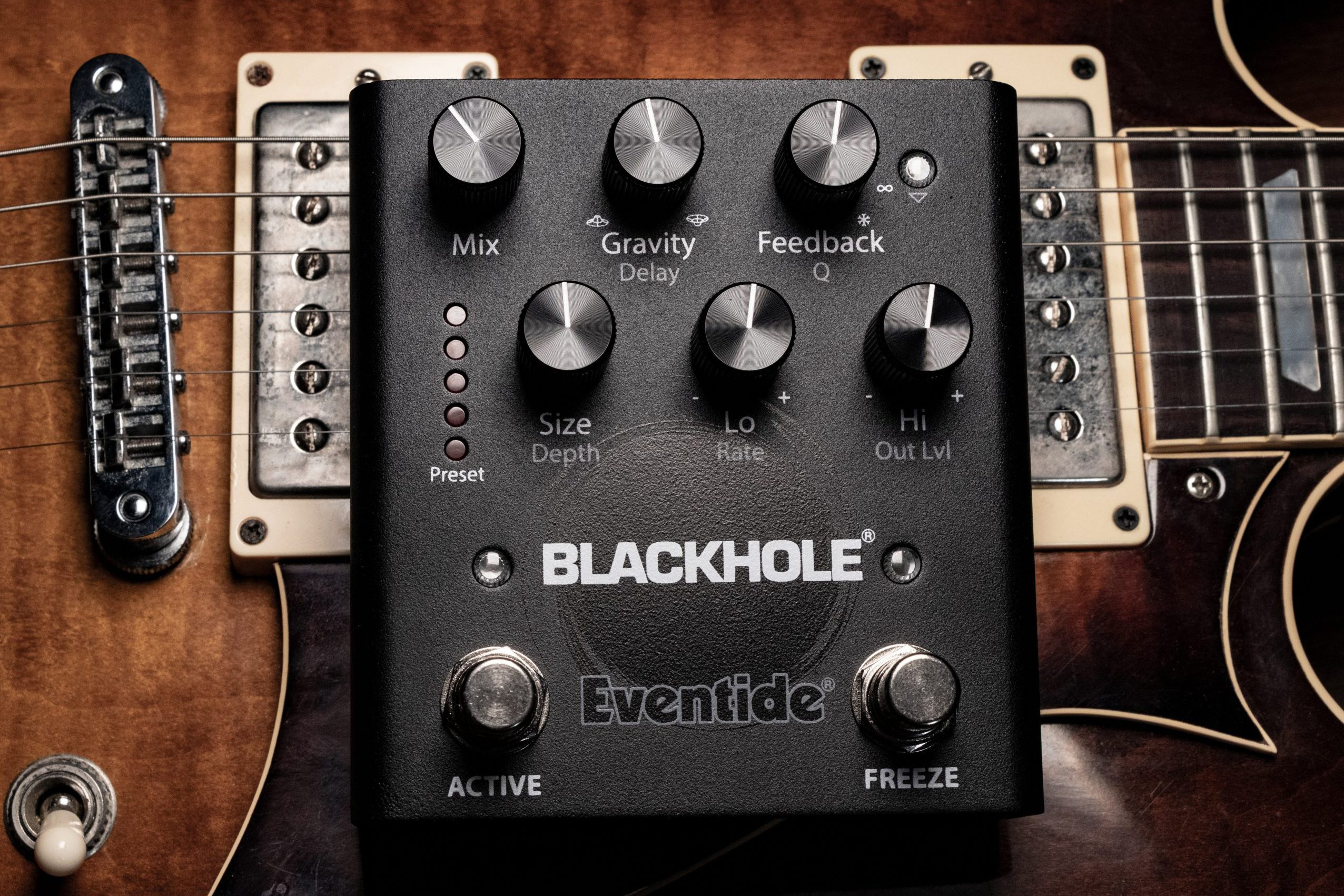 Limitless and boundless, Blackhole features two types of infinite reverb. “Infinite mode” continuously layers new sound on top of a suspended reverb while “Freeze mode” holds the effect in stasis, allowing you to play over the reverb tail. The Freeze Footswitch allows instant access to this feature.