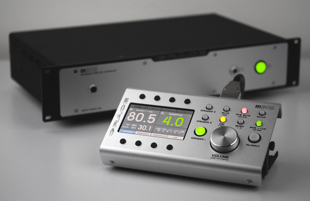 With the Grace Design m905 monitor controller in your rack, you'll have comprehensive control over complex monitoring functions, plus the undeniably transparent and dynamic sound Grace is known for. With the included remote control, you can check your I/O signal levels, switch between three sets.
