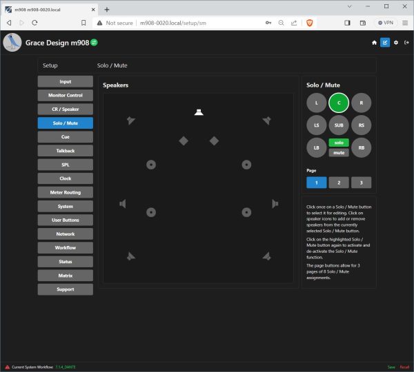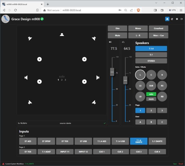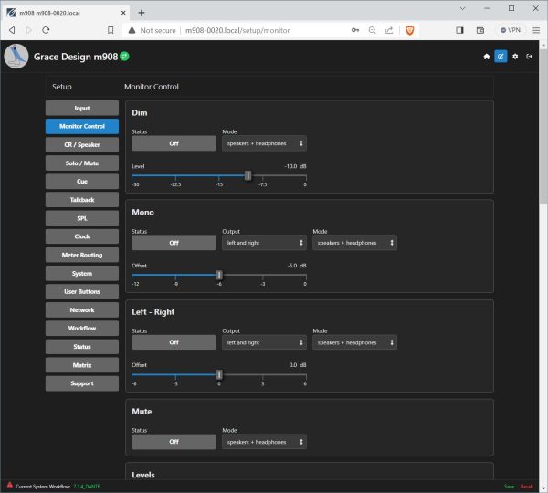 The all-new embedded web control and setup platform allows you to control all monitoring features, and edit, load and store all system parameters. The interface works on any desktop or device browser that is connected to the same LAN as the m908.