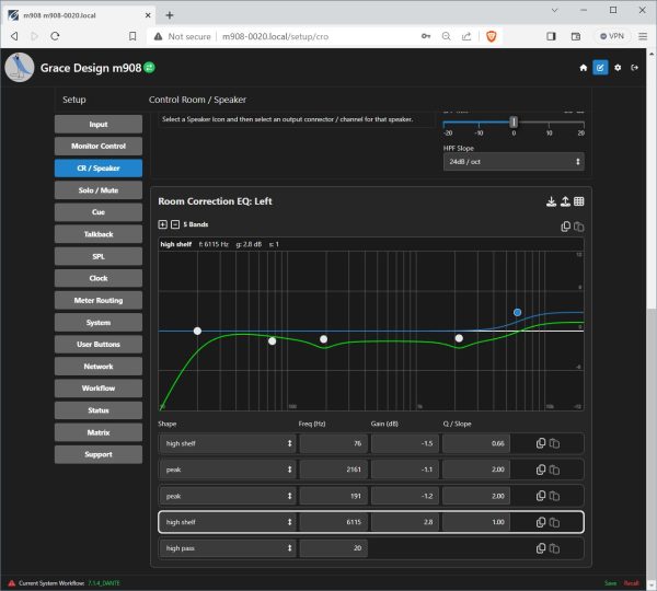 With the new control and setup software, EQ settings can be copy / pasted between individual speakers or speaker systems. Also, entire room EQ settings can now be imported and exported directly to the m908 imported via .csv files.