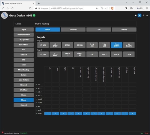 System I/O routing in the Web UI can be done in the matrix routing window, which allows you to quicky and easily assign any input channel to any speaker channel. This greatly streamlines any setup process.