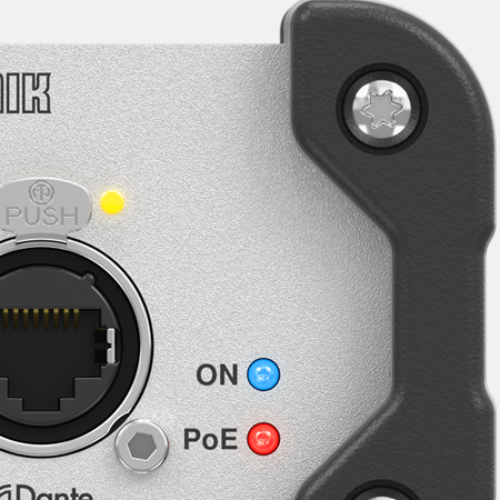 The Klark Teknik DN 30R Dante Audio Receiver is a simple and convenient way for connecting active loudspeakers, amplifiers or mixers to a Dante network. It’s compact size as well as the flexibility of its features and mounting options make it the perfect networking solution for hospitality and event spaces, performance and installed audio and so much more. The DN 30R can receive signals from any Dante transmitter via a standard CAT5e or CAT6 cable. This same connection can be used to power the device through Power over Ethernet or via a 24-volt DC input.