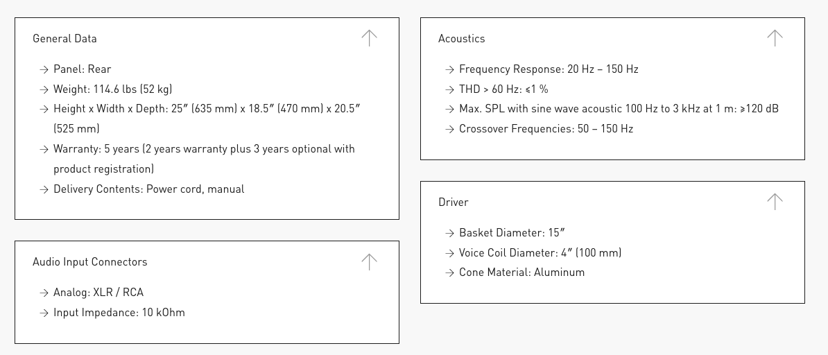 Sub15 是一款功能極為強大的重低音揚聲器,能夠將主監聽音箱和中場監聽音箱的頻率範圍擴展到 20Hz。