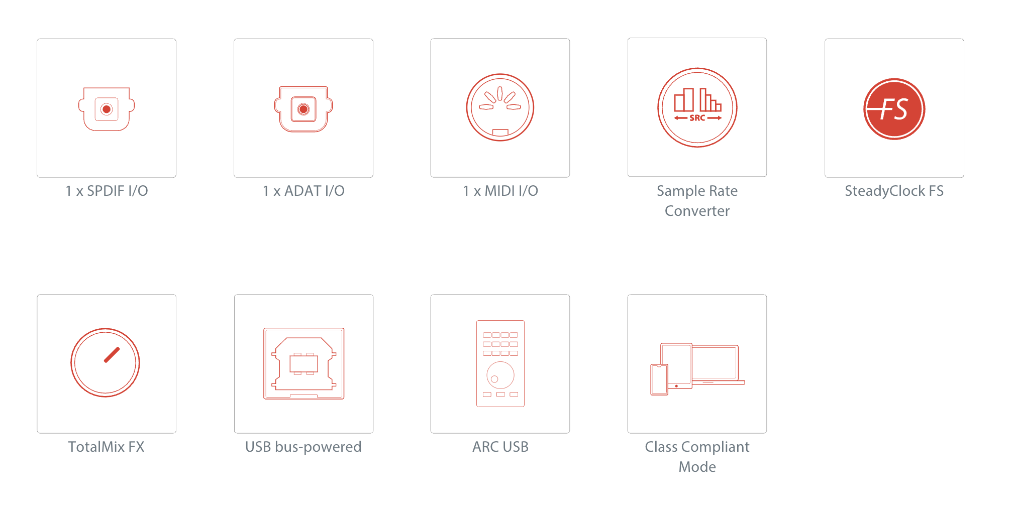 The latest Digiface AES is a professional, bus powered 14 input and 16 output channel USB 2.0 interface with 2 Mic/Line universal analog input channels and 4 analog output channels (2 XLR, one TRS phones) complementing its digital I/O section.
