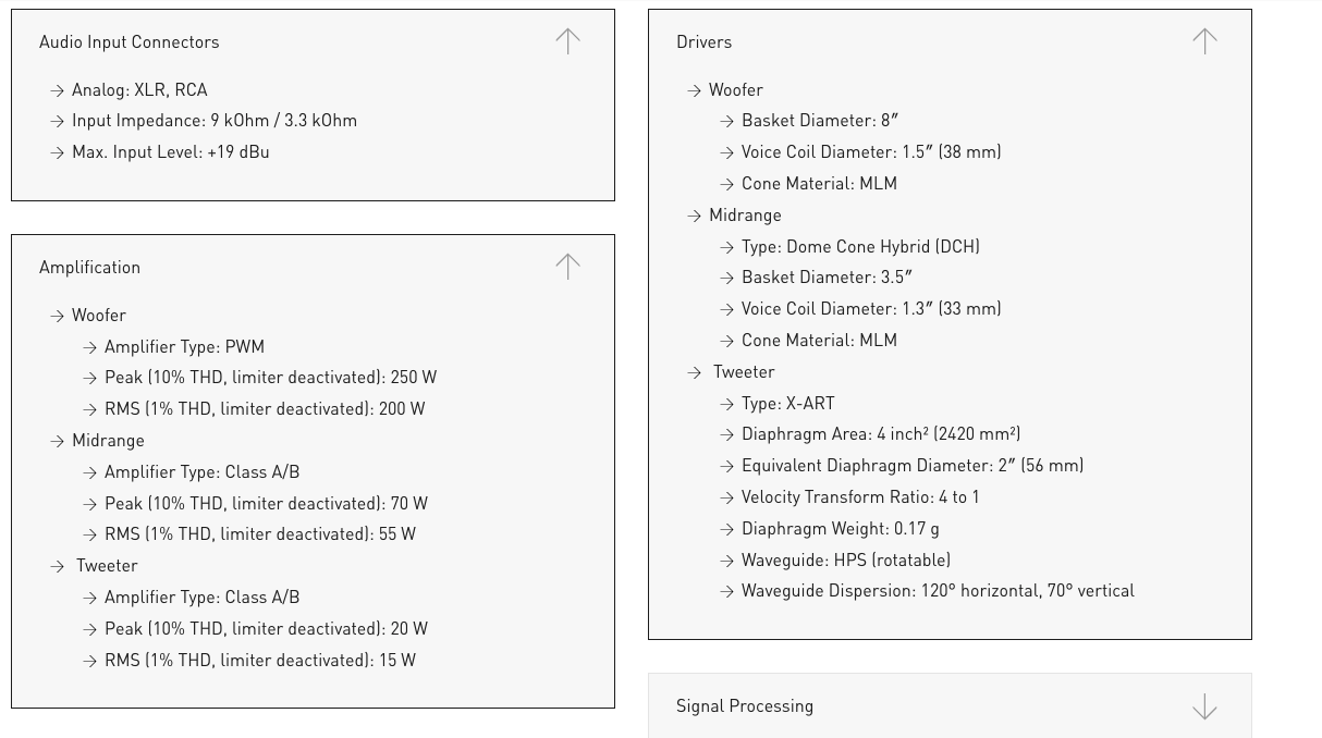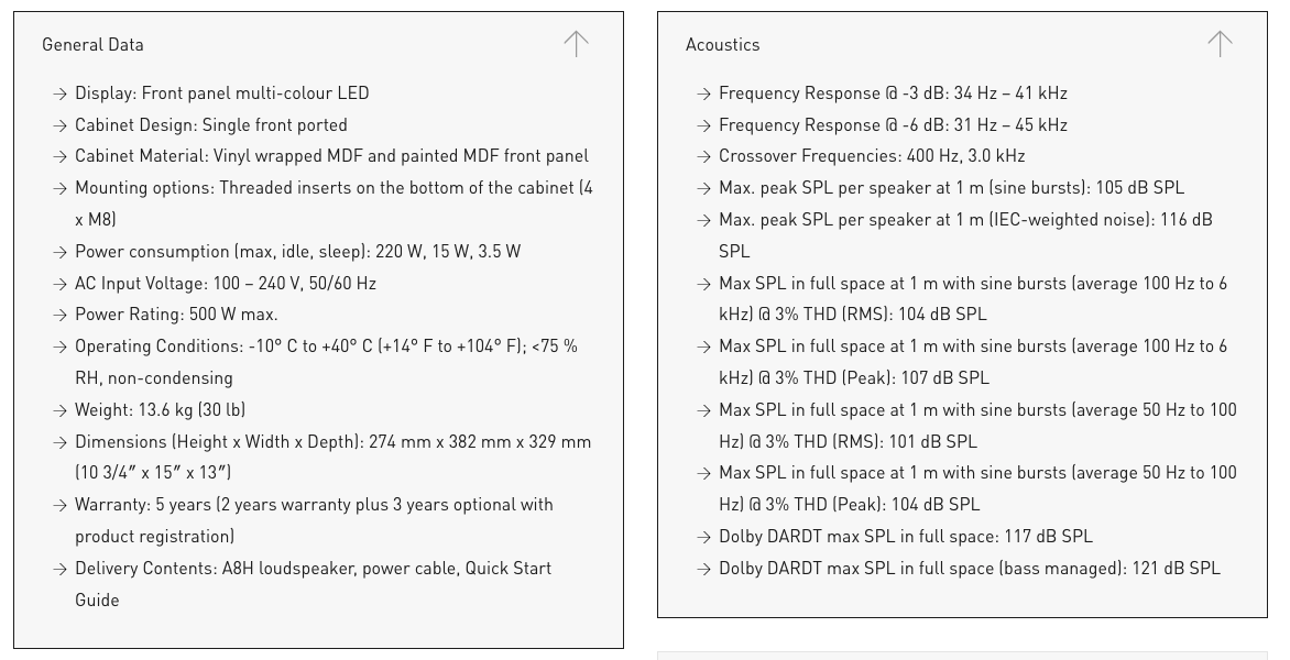 A8H 是 A 系列的巔峰之作,是一款三路揚聲器,能夠提供對音質要求極高的聆聽環境所需的極其精準且富有解析力的聲音。