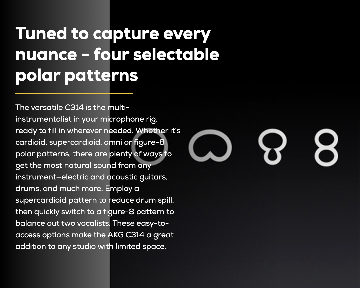 One of the most respected families in audio recording is proud to introduce a new member. Join us in welcoming the AKG C314 professional multi-pattern condenser microphone to the studio, stage, and wherever your sound takes you.