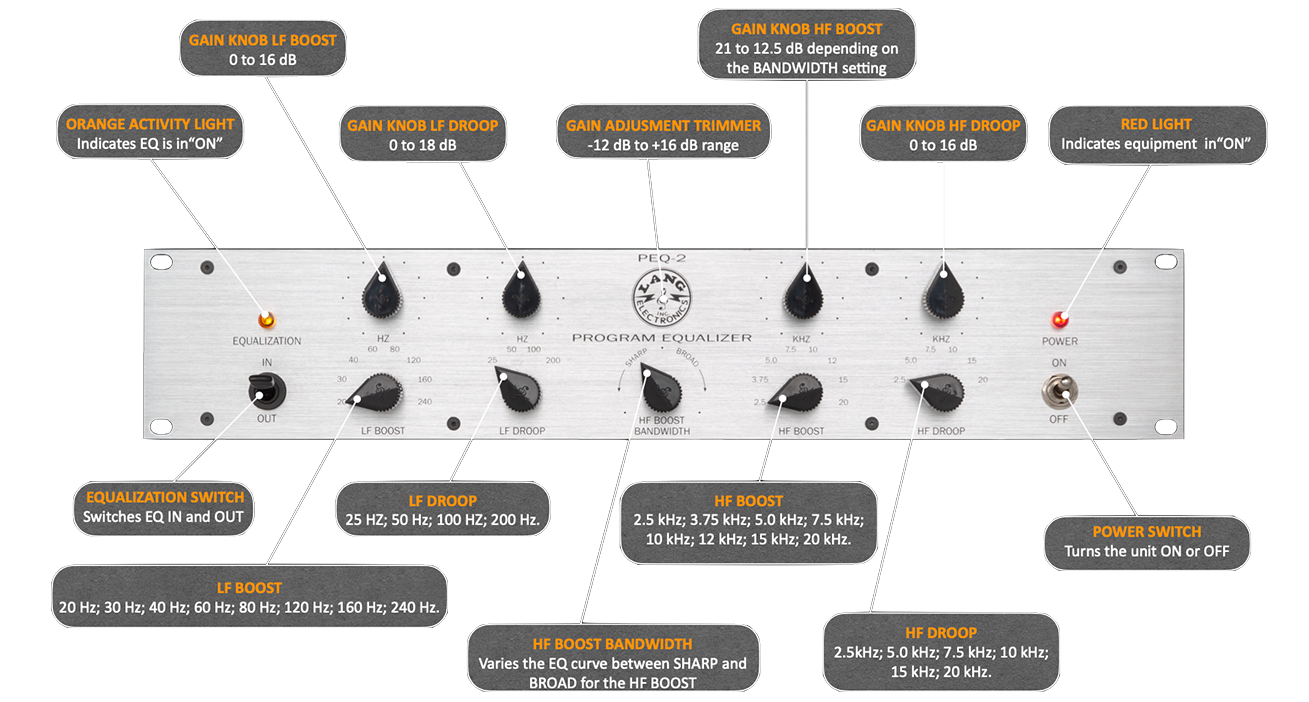 The LANG PEQ-2 Program Equalizer offers an inviting, easily controllable yet powerful processor to quickly adjust the frequency of your material while recording, mixing or mastering.