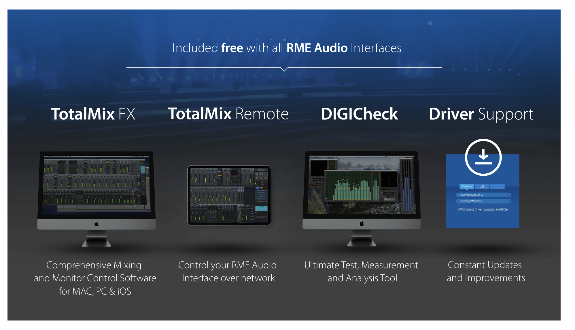 With exceptional flexibility and compatibility, the inclusion of DURec (Direct USB Recording), and RME’s famous low latency hardware and driver designs, the Fireface UFX II delivers a rich feature set that will appeal to users in both high end home studios and commercial audio production facilities.