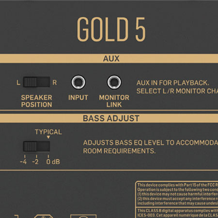 GOLD 5 allows you to connect up to 2 audio sources simultaneously thanks to its continually-active XLR and TRS inputs, and assign Left or Right when connected to a 3.5mm TRS jack plug. Switchable intelligent signal sensing circuitry is included, ensuring that when your system is not in use, your monitors switch into an environmentally friendly, power-saving stand-by mode.