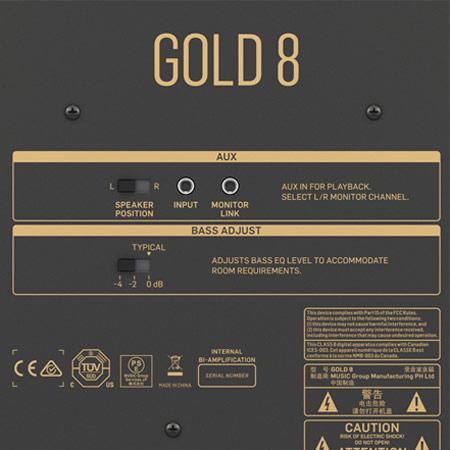 GOLD 8 allows you to connect up to 2 audio sources simultaneously thanks to its continually-active XLR and TRS inputs, and assign Left or Right when connected to a 3.5mm TRS jack plug. Switchable intelligent signal sensing circuitry is included, ensuring that when your system is not in use, your monitors switch into an environmentally friendly, power-saving stand-by mode.