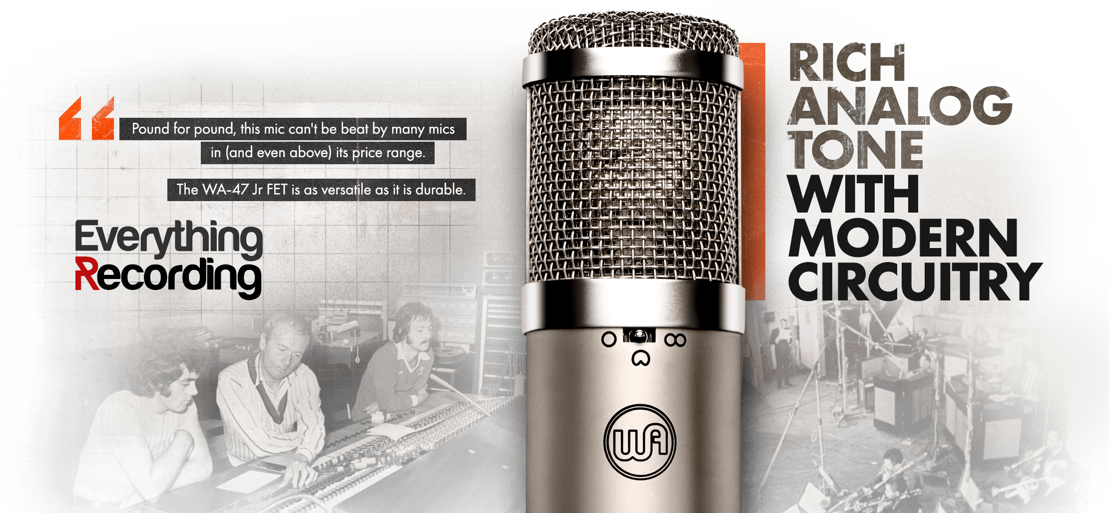 The WA-47 jr uses a true reproduction of the K47-style capsule in the original 47 tube mic. Perfect for adding instant vintage-vibe to any recording.