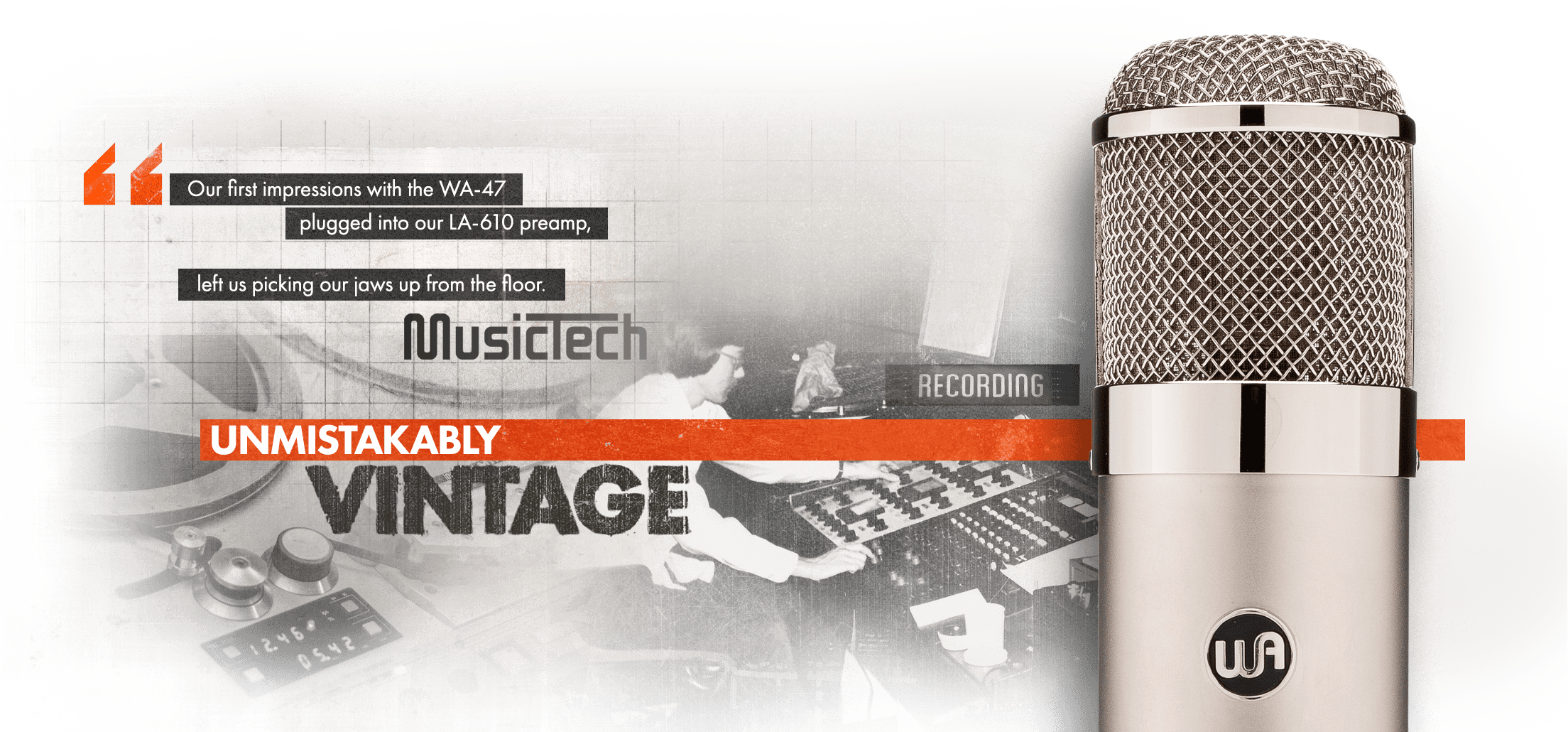 The WA-47 is designed and built to deliver the most authentic vintage 47-style sound with zero corners cut. Just like the original, the WA-47 circuit allows a lot of low-end and mid detail to come through. While the lows and mids come together to capture all the rich warmth and detail of acoustic instruments, vocals benefit greatly from the smooth and pleasing top end of the WA-47. The coveted and unmistakably vintage sound profile of the WA-47 makes it the perfect choice to create timeless music.